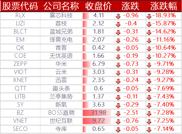▲ 下跌的其他中概股