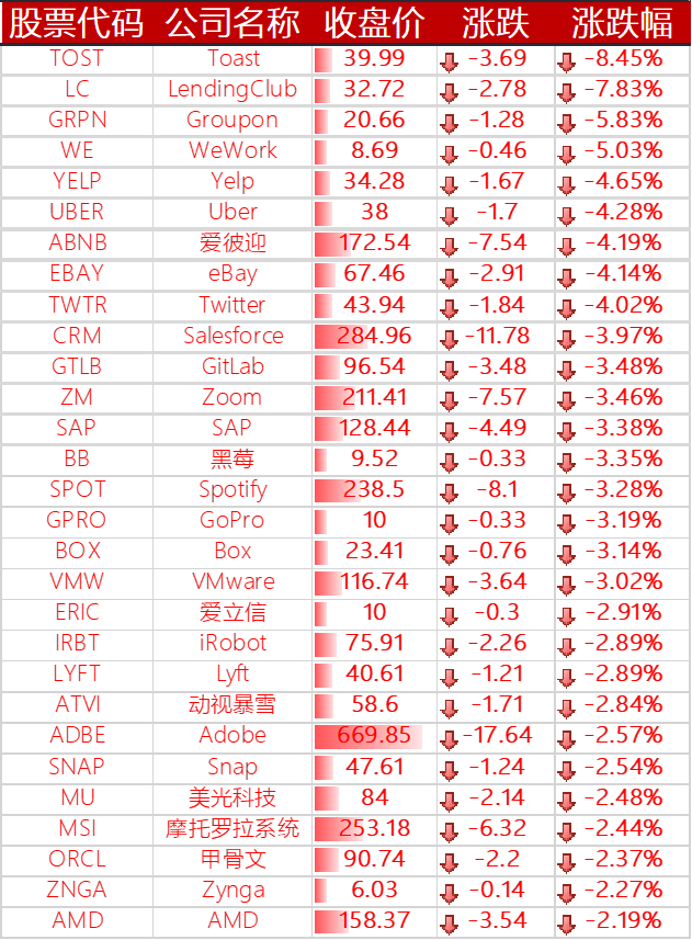 ▲ 下跌的其他国外科技股